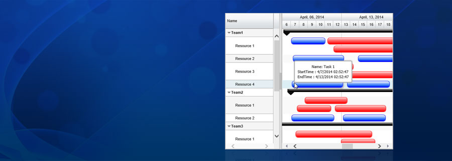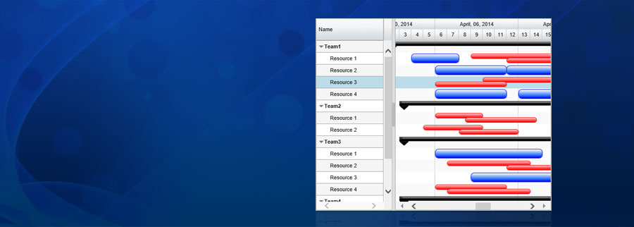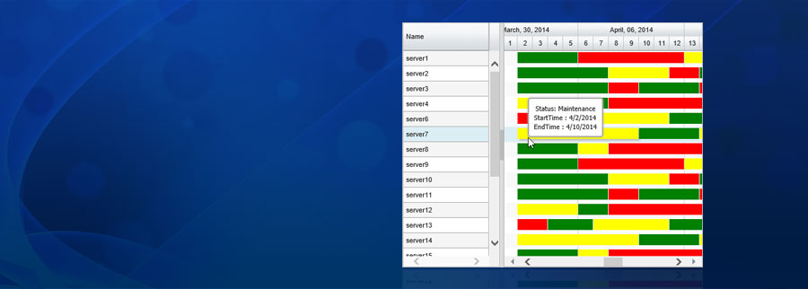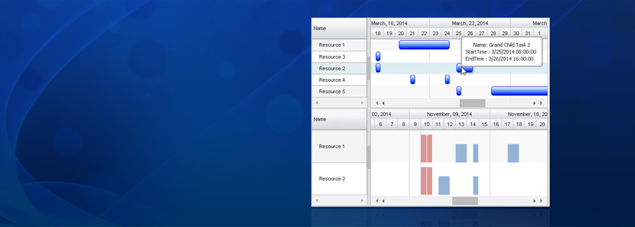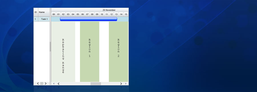 • Several Built-in, Auto-Zooming, Auto-Hiding Time line headers (Minutes to Years) including support for custom headers