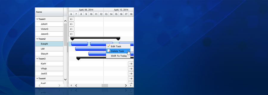 Build a very intuitive and professional looking MS Project like Project Scheduling UI with all the must have features you will need: